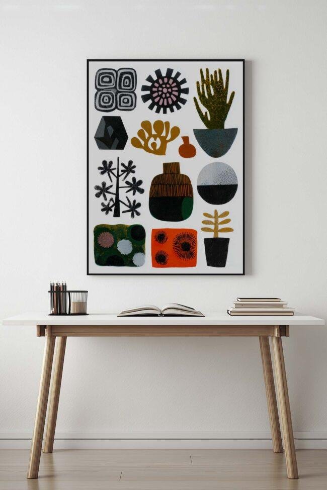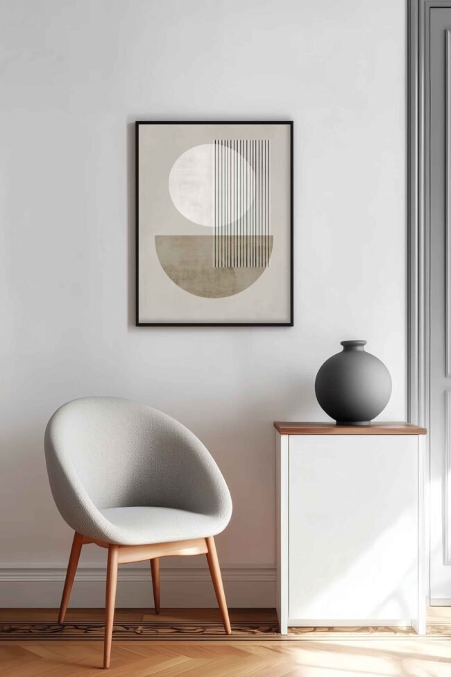 Abstract wall art adds depth and energy to any room. Hang a large abstract print as a statement piece in your living room, or combine smaller prints to build a balanced gallery wall. In Scandinavian-inspired spaces, neutral-toned abstract posters add calm and sophistication. For modern interiors, vibrant hues or textured paint designs create contrast and life.