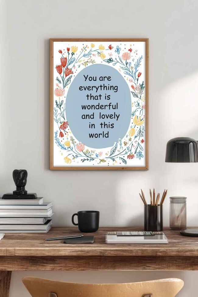 Every quote tells a story. Choose text art that matches your mindset — optimistic, humorous, romantic, or reflective. Find designs like “Less is More,” “Stay Wild,” “Dream Big,” “But First, Coffee,” and many more. For kids’ rooms, explore cute alphabet posters or playful messages that encourage imagination and joy. Our wide range of quote posters includes modern fonts, minimal graphics, and timeless lettering styles that suit both classic and contemporary interiors.