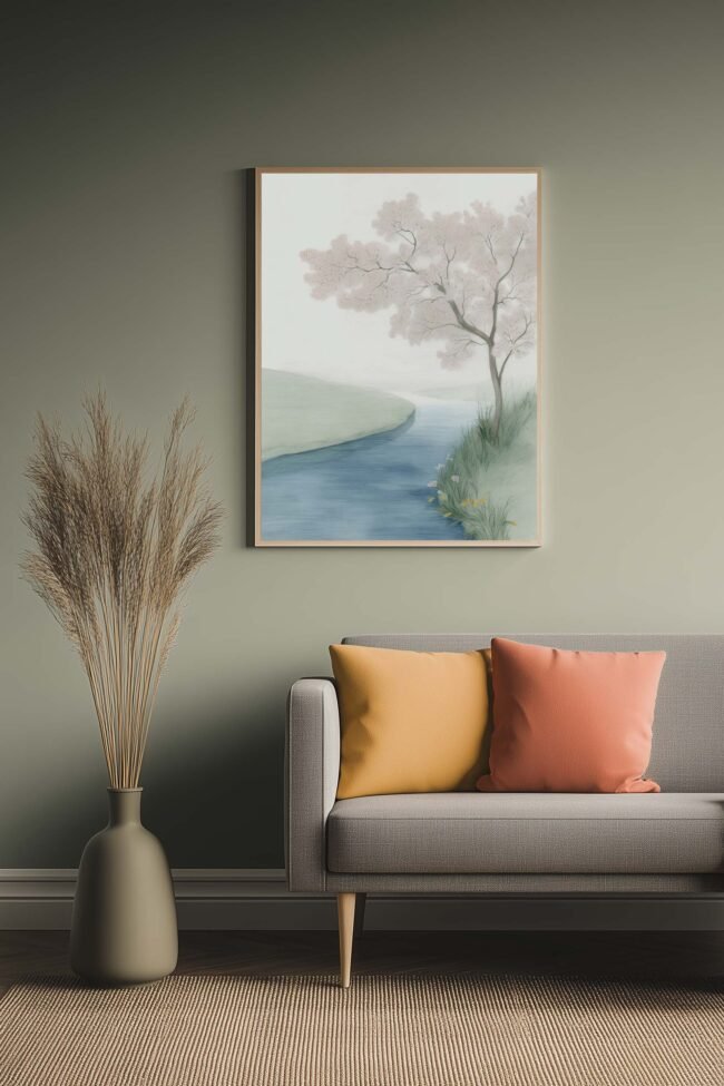 Acrylic art print of the Chanel No. 5 bottle with roses. The painting shows soft pastel tones of pink and gold, with green leaves against a muted grey background. Perfect for fashion lovers and design enthusiasts, this piece adds a sophisticated and romantic touch to any space.