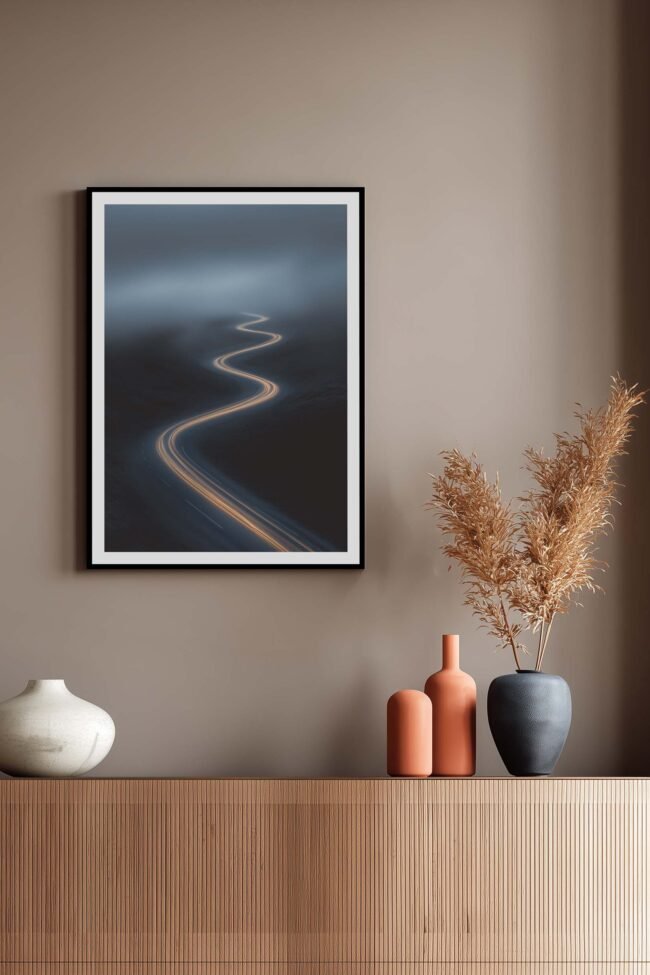 Photograph of a wooden swing hanging from the branch of an old tree. The print shows soft sunlight filtering through leaves, with dappled shadows on the ground. This nature fine photograph adds a touch of serenity and rustic charm to any interior, from modern Scandinavian spaces to cozy countryside homes. A peaceful reminder of slow living and the quiet beauty of nature’s embrace.