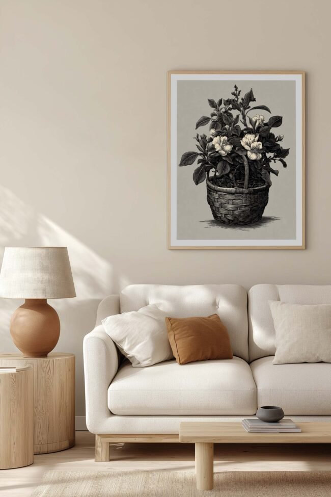 Art print with hand-drawn poppies in warm earthy tones. The flowers are outlined in black lines with a modern drawing style, inspired by vintage botanical illustrations. A perfect addition to any interior, it brings warmth and a touch of artistic charm to your walls. Ideal for Scandinavian, boho, or modern homes.